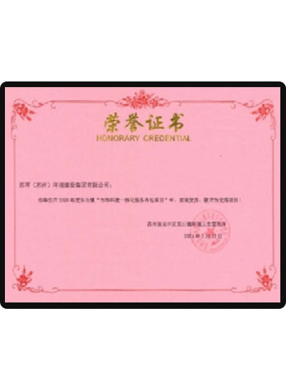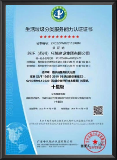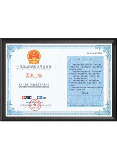目前,集团公司已获得“城市生活垃圾经营性清扫、收集、运输服务许可证” 、“水域(河道)清洁治理服务专业资质证书” 、“国家一级清洁认证资质”、“江苏省二级保安服务资质”等资质证书 ,成为国家清洁行业“常务理事”单位。集团先后通过了质量管理体系、环境管理体系、职业健康安全管理体系的认证、五星售后服务认证体系、五星清洁环卫服务等级认证、社会责任管理体系认证、诚信管理体系认证证书,并荣获了守合同重信用企业、 AAA资信等级、AAA级信用等级评估、AAA级重合同守信用企业,连续12届获得市级“市容环卫杯”先进单位,江苏省第九届园博会“优秀服务商”,苏州市物业协会常务理事。